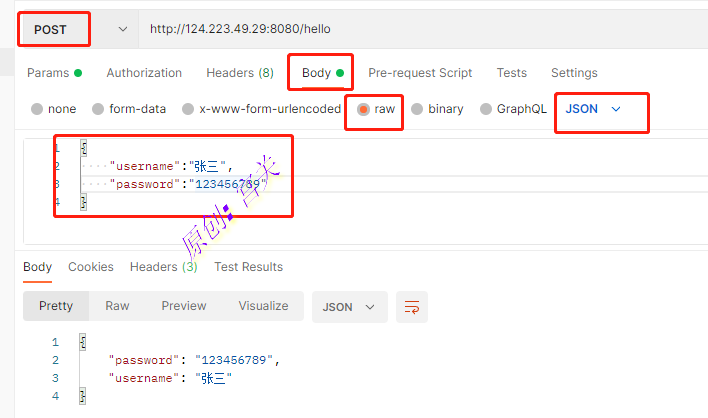 注意:在通过接口请求的时候,字段名要用小写形式就行,比如上面的username,因为已经通过form指定了,将小写的username绑定到大写的Username字段上