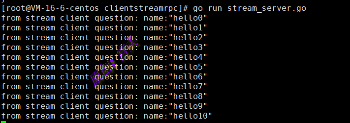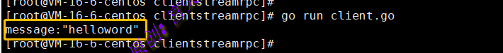 • 通过Send发送两条数据,字段名为hello和word,发送到服务端后合并为helloworld,然后通过CloseAndRecv关闭发送数据的流并接收来自服务端的流信息