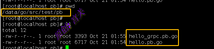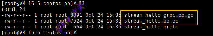 利用hello.proto并且使用如下两个命令生成对应的go文件,如下:
