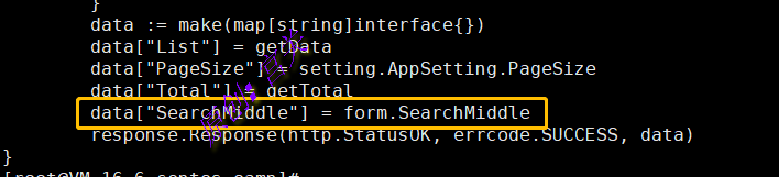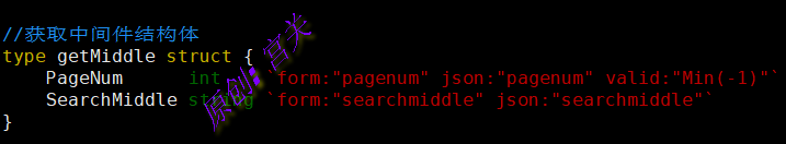 1、首先在文件/oamp/router/api/v1/middleware.go中获取中间件的结构体中添加搜索字段SearchMiddle,如图: