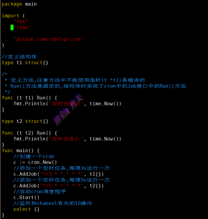 golang也可以执行定时任务,需要借助第三方包,包名如下: