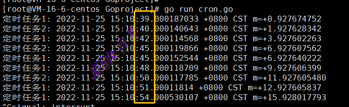 从上图看出,定时任务1每隔3s执行一次,定时任务2每隔5s执行一次