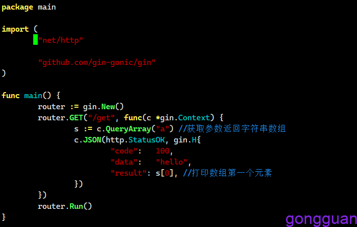 8、通过QueryArray()来获取参数并返回字符串切片,语法如下: