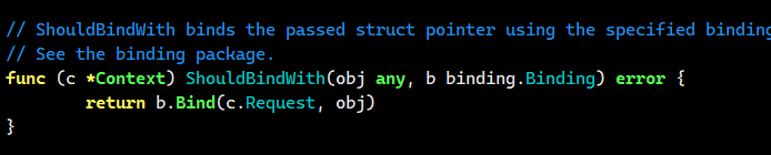 修改上图中的方法,将Bind()改为ShouldBind(),如图: