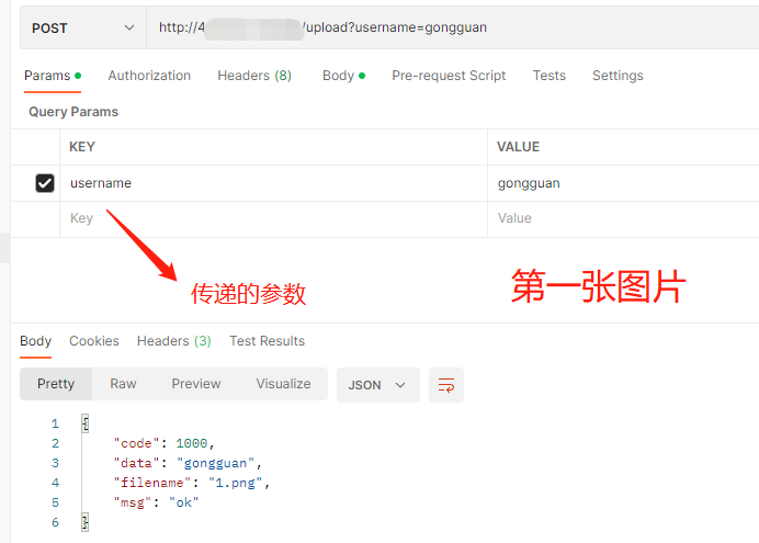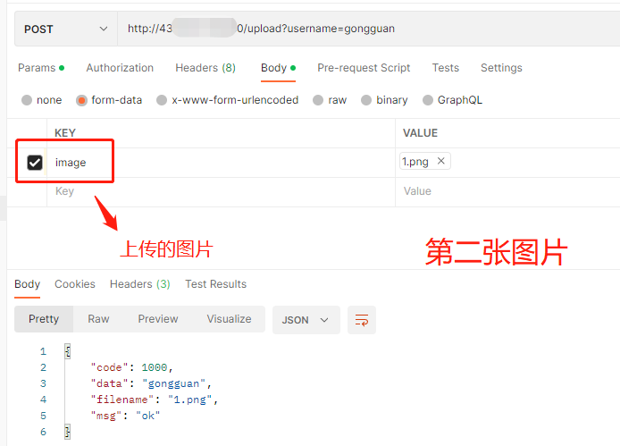 下面是一个使用ShouldBindWith()的例子,主要功能是通过POST发送请求的时候,传递参数同时还上传图片,如下: