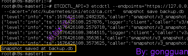 ETCDCTL_API=3 etcdctl --endpoints="https://127.0.0.1:2379"  --cert="/etc/kubernetes/pki/etcd/server.crt"  --key="/etc/kubernetes/pki/etcd/server.key"  --cacert="/etc/kubernetes/pki/etcd/ca.crt"   snapshot save backup.db