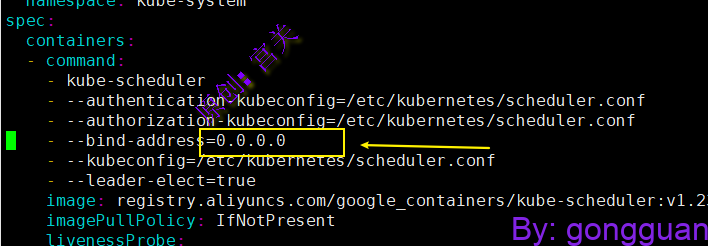 1、修改kube-scheduler配置文件,修改地址为0.0.0.0,如图: