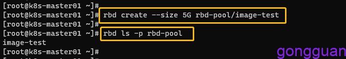 rbd create --size 5G rbd-pool/image-test  #创建大小为5G的镜像