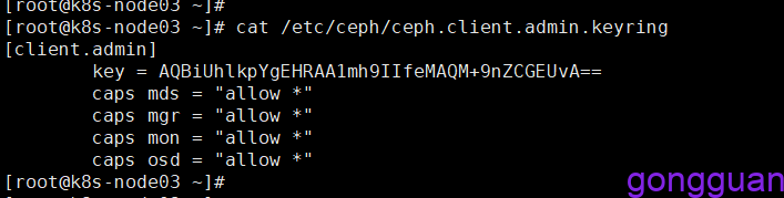 注意注意:ceph.client.admin.keyring文件不可出现在任何客户端中,因此此文件具有超级管理员权限,有了此文件即可操作集群各种资源