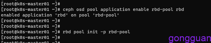 ceph osd pool application enable rbd-pool rbd    #启用rbd应用