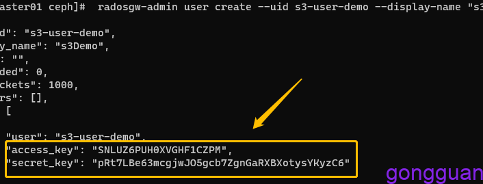 access_key和secret_key要记住,如果忘记了,可通过命令查询: