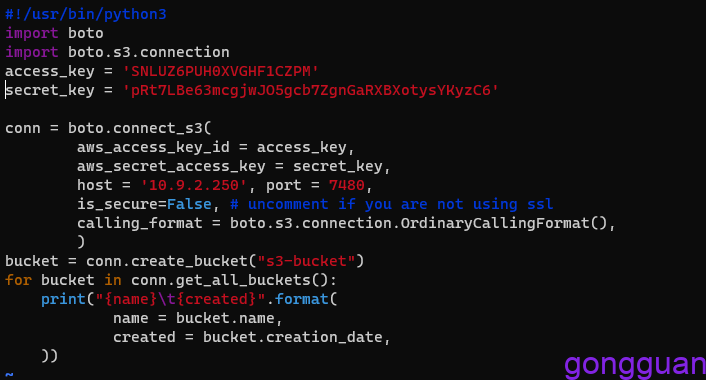 s3cmd get s3://new-bucket/secret.yml      #下载文件