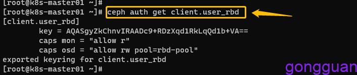 ceph auth get client.user_rbd -o /etc/ceph/ceph.client.user_rbd.keyring