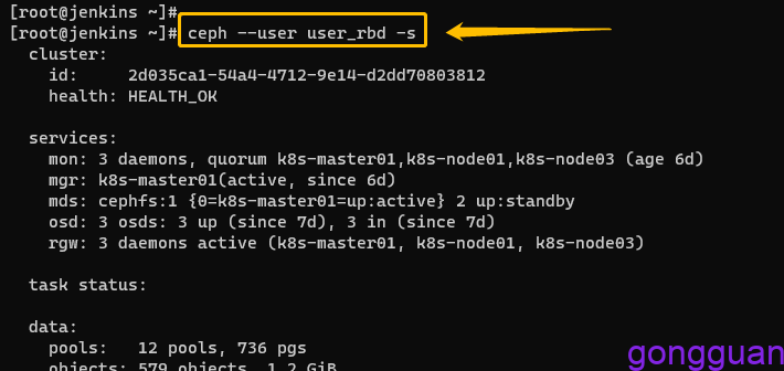 ceph auth get-or-create client.user_rbd mon 'allow r' osd 'allow rw pool=rbd-pool'