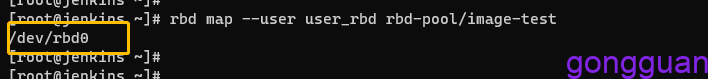 rbd map --user user_rbd rbd-pool/image-test  #将此命令写入到/etc/rc.d/rc.local中开启自动映射