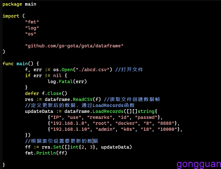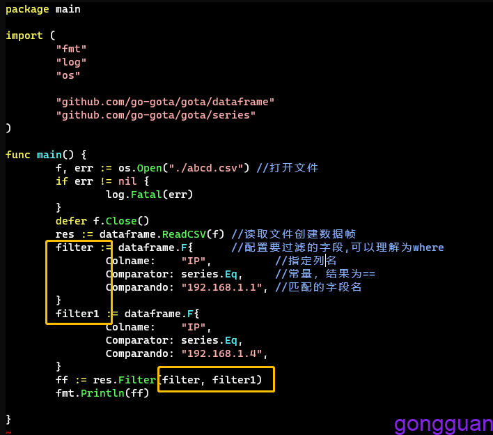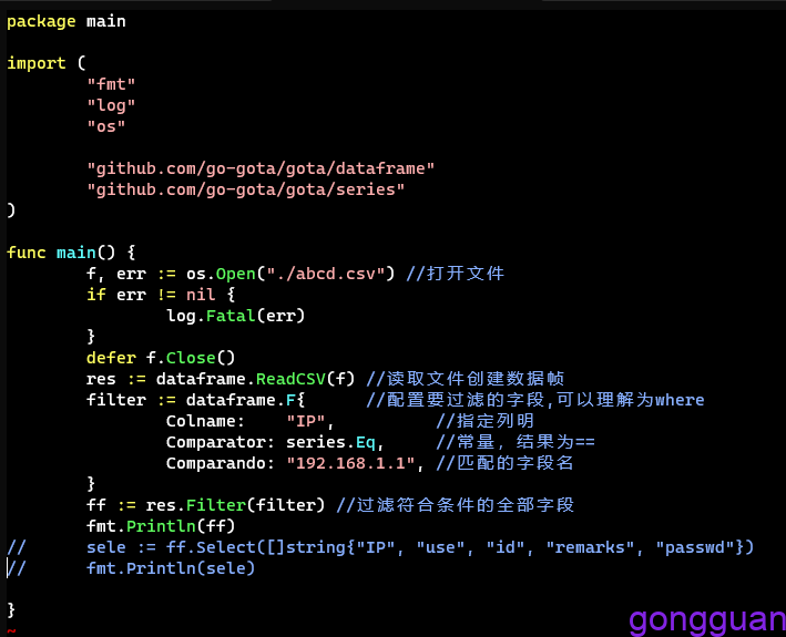 对于复杂的CSV文件,通过标准库encoding/csv处理可能会很麻烦并且效果未必很好,此时可以通过数据帧来操作,本例子演示的相关数据帧程序包为dataframe,地址为: