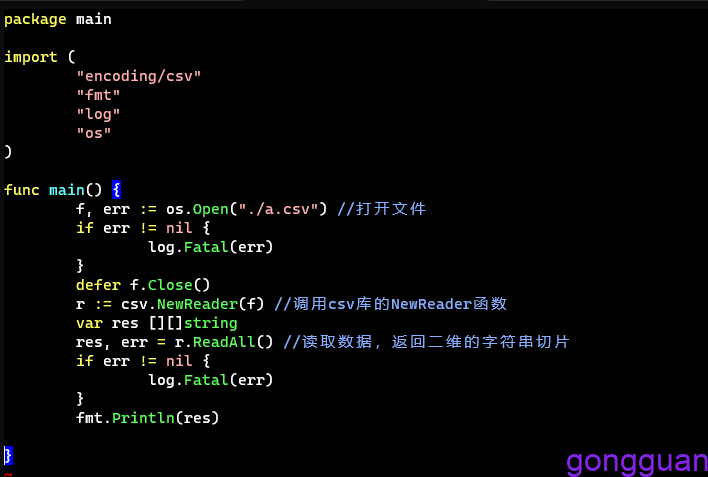 注意:如果csv文件不是以逗号分隔或者文件中包含注释的行,此时可以使用csv.Reader.Comma和csv.Reader.Comment来处理