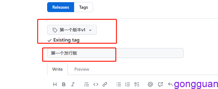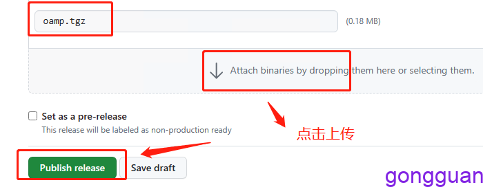 5、创建发行版的时候,就可以选择此标签,然后上传安装包,在发布即可,如图: