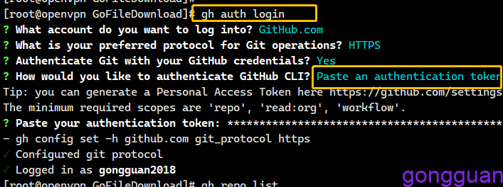 GitHub更新了push,为了安全,不允许直接使用账号密码来进行push,会提示认证失败,此时就可以通过GitHub Cli 来连接github进行push,如果是在linux上使用GitHub Cli ,还需要token进行认证,token创建方法可参考文章https://blog.ywdevops.cn/index.php/2023/08/04/github/