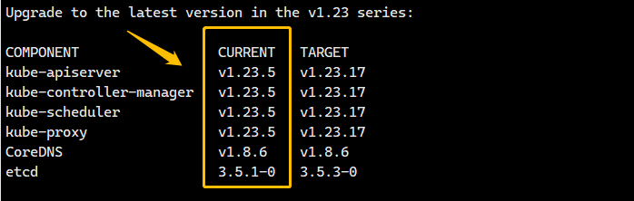 从上图看出,组件的版本当前是1.23.5,不算CoreDNS和etcd