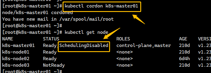 2、首先设置k8s-master01不可调度,执行命令如图: