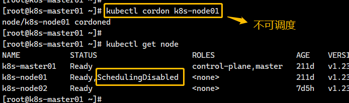 kubectl drain k8s-node01 --ignore-daemonsets #daemonset控制器运行的忽略