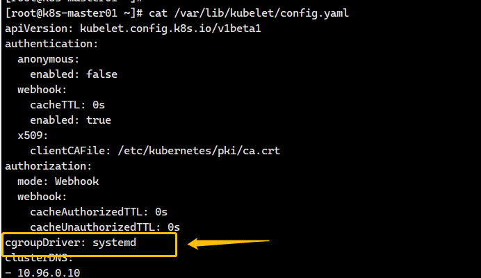 要将 systemd 设置为 cgroup 驱动,需编辑 KubeletConfiguration 的 cgroupDriver 选项,并将其设置为 systemd,kubeadm安装的集群,kubelet配置文件在/var/lib/kubelet/config.yaml,例如: