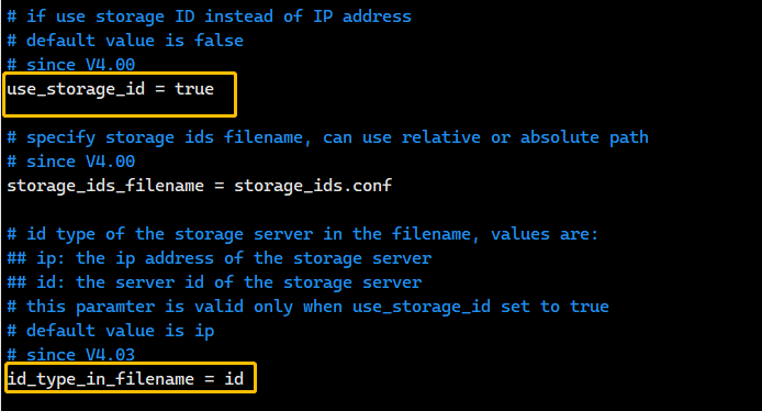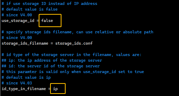 - storage_ids.conf:保证此文件中的id,例如:100001,如果不一样会找不到文件的
