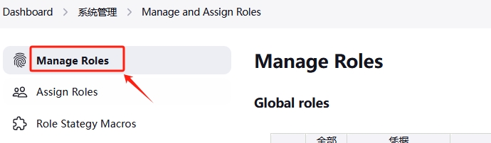 4、点击Manage and Assign Roles下的Assign Roles,在Global roles添加用户(用户需要提前创建的),选择刚创建的用户角色,如图:
