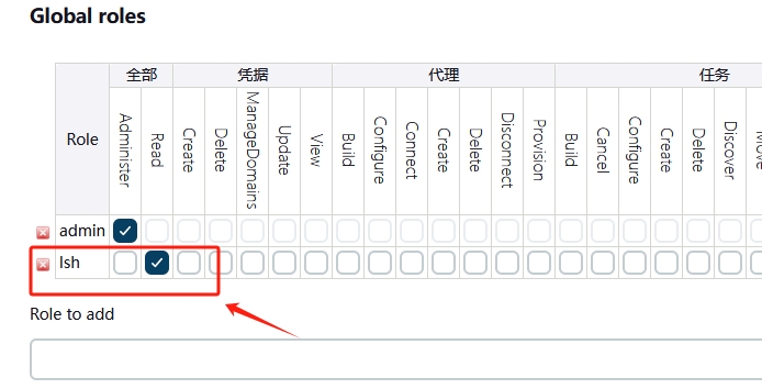 在Global roles处添加一个角色,并选择全局只读权限,如图: