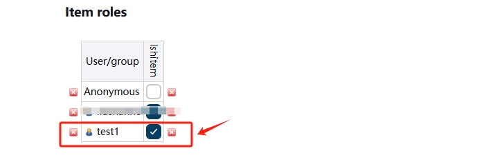 在Items Roles位置,添加用户,选择刚才创建的项目角色即可,如图: