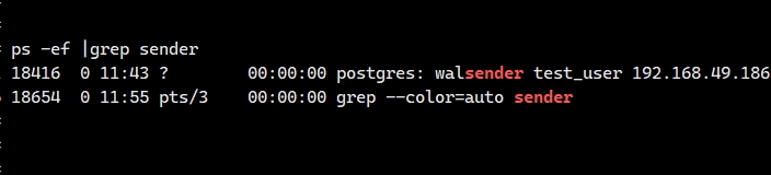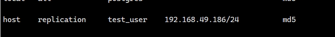 primary_conninfo = 'host=192.168.49.224 port=5432 user=test_user password=Abcd1234' #对应主库的连接信息