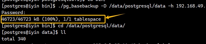 ./pg_basebackup -D /data/postgresql/data -h 192.168.49.224 -p 5432 -U test_user -X stream -P -R