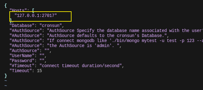 vim conf/db.json    #修改mongodb的ip地址和端口vim