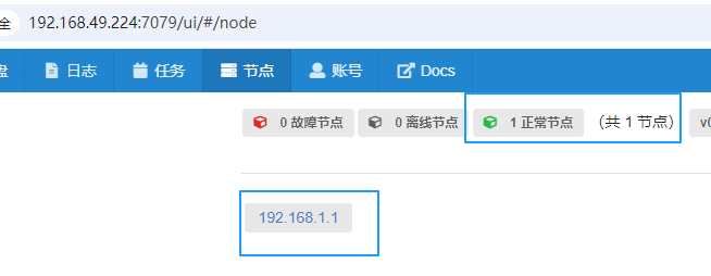 9、再次登陆web页面,可以看到已经出现了节点,并显示节点ip,如图: