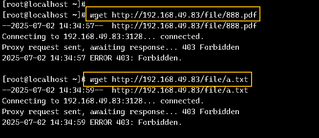 在客户端服务器上,执行下载txt和pdf文件会提示403,如图: