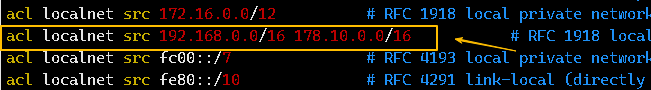 acl localnet src 192.168.0.0/16 178.10.0.0/16 # RFC 1918 local private network (LAN)