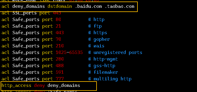 注:squid是按照顺序从上往下匹配规则的,因此要注意顺序,顺序不对不会生效