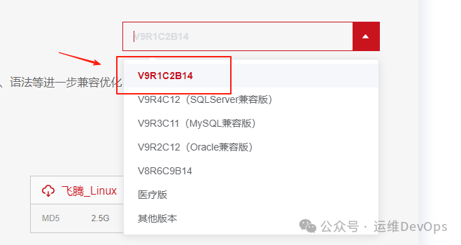 KingBase数据库是一款国产数据库,全名叫人大金仓数据库,目前也是信创数据库之一,官网有多个版本,有兼容Mysql的,有兼容Oracle的,我这里选择了第一个,默认的版本,V9,如图: