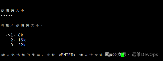 存储块大小,这里选择Mysql的默认值16k,如图: