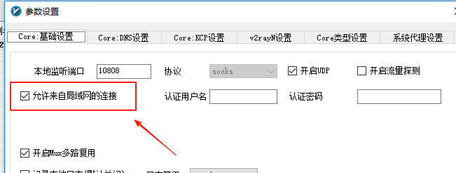 1、修改参数设置,勾选允许来自局域网的连接,如图:
