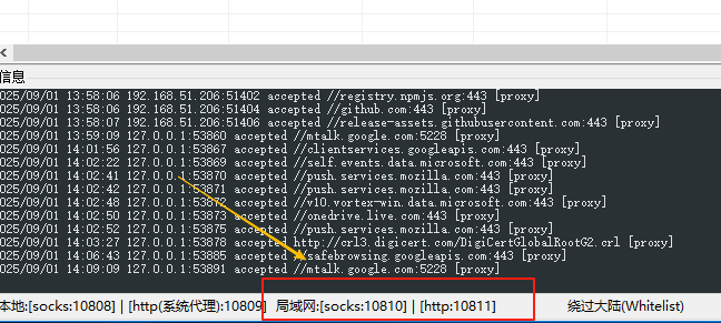 2、在客户端下面可以看到局域网内的代理端口信息,如图: