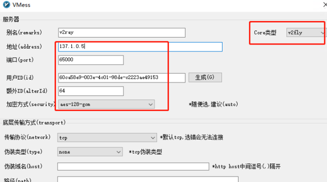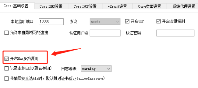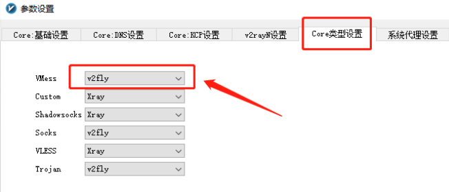 4、点击设置–参数设置–Core类型设置,vmess选择v2fly,如图:
