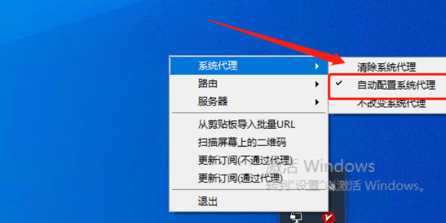 5、右下角图标–右键–系统代理–自动配置系统代理,如图: