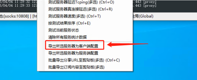6、在添加后机器上,右键–导出为客户端配置,命名为config.json,如图: