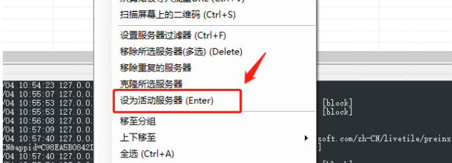 7、在添加后的机器上右键,设为活动的服务器,如图: