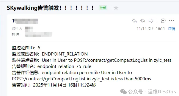 启动脚本后,触发告警,查看邮箱告警内容如图: