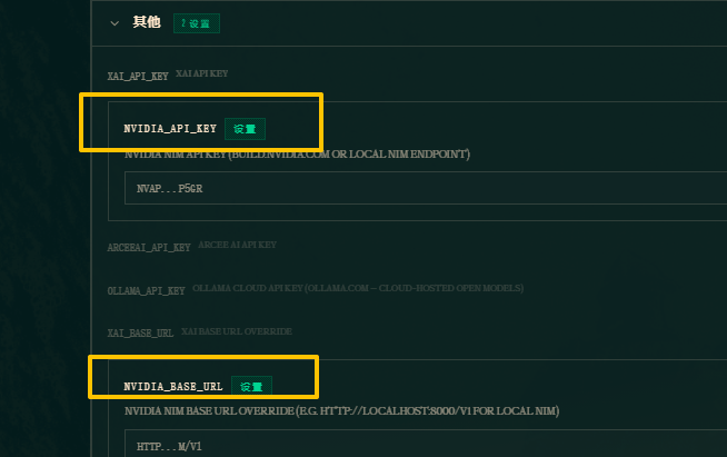 5、配置模型,我这里演示的是配置英伟达模型,点击密钥–LLM提供商–其他,填写nvidia的url和密钥,如图: