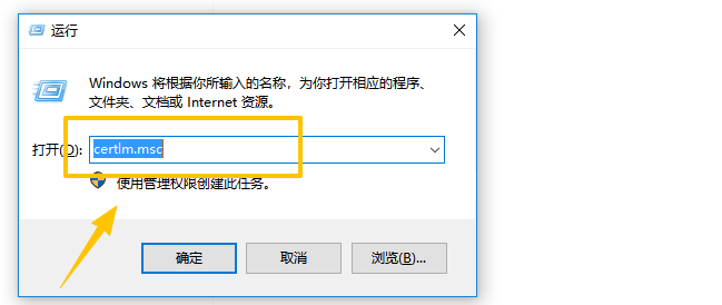 在运行窗口,输入certlm.msc,如图: